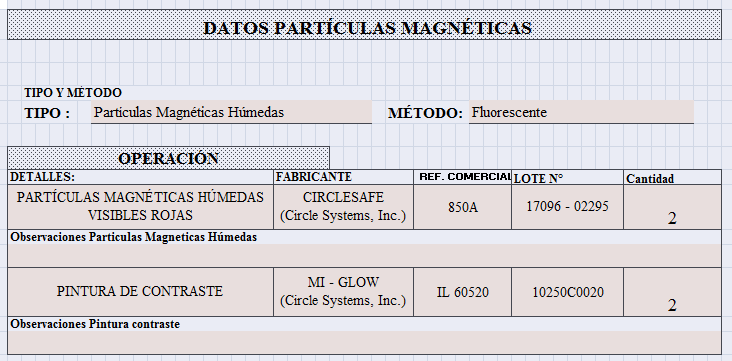 En ella prácticamente se escoge el tipo y método empleado y descripción de consumibles como Partículas Magnéticas y pintura de contraste.