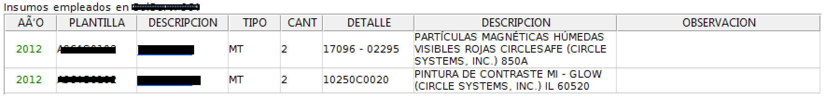 Fig 1032 Insumos/costos de partículas Magnéticas reflejada en la Intranet