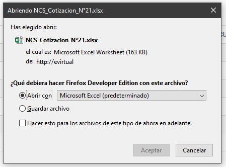 En caso de que se seleccione guardar archivo, la próxima vez no aparecerá ésta ventana emergente y se comenzará a descargar el archivo.