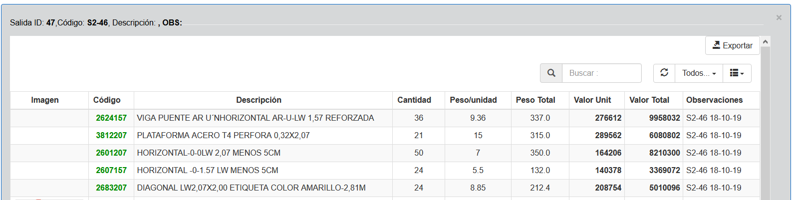 Exportar Permite exportar la información desplegada en la tabla de datos.
