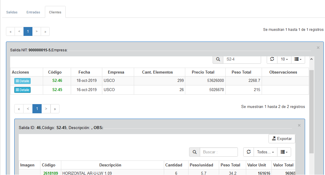 Fig 836 Extracto de Pantalla, se muestra el detalle de una orden de salida del Cliente actual