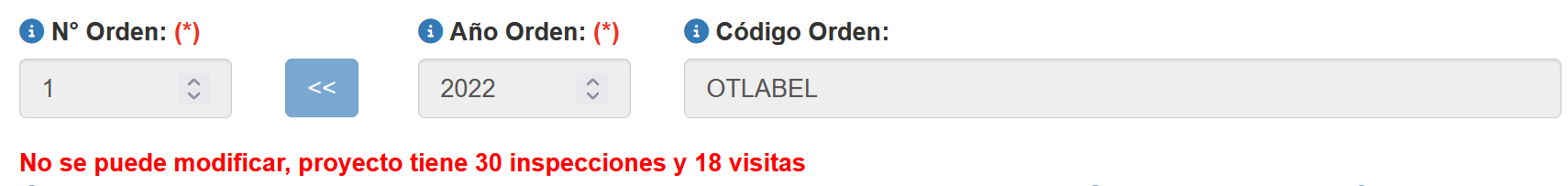 Fig 483 Bloqueo de cambio de N°, año y código de la orden/Proyecto de inspección.