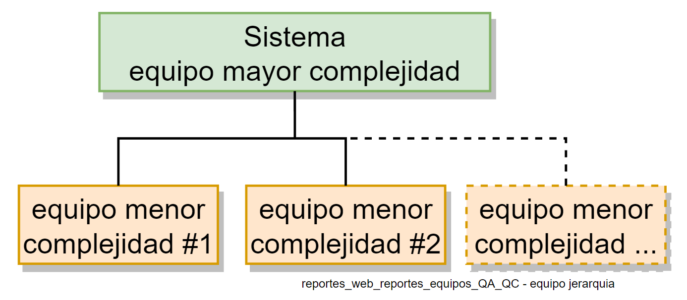 Antes de detallar esta pestaña hay que tener en cuenta que hay Jerarquía en Sistemas/Equipos. Se puede dar el caso que haya Sistemas o equipos de mayor complejidad que posean una serie de equipos de menor complejidad. Para poder clasificar esto adecuadamente se hay que considerar lo enunciado en la siguiente imagen