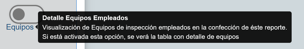 Esta opción permite asociar a un reporte determinado la información de un Equipo de inspección definido en la empresa