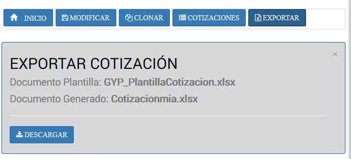 Fig 166 Opción para descargar Cotización Generada en formato nativo de EXCEL.