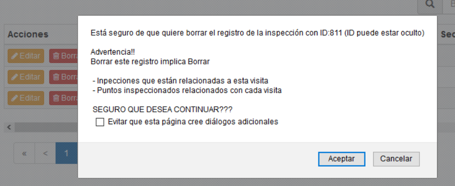 al presionar este botón aparecerá aparecerá una ventana emergente que advertirá al usuario que se borrará un contenido
