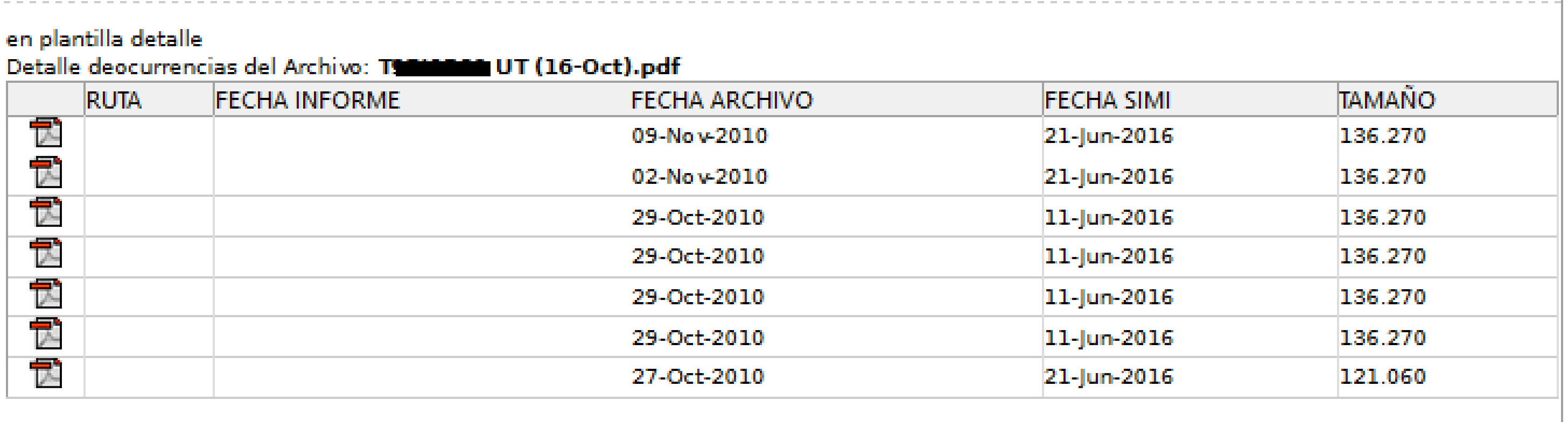 Por ejemplo el archivo "Txxx UT (16-oct)" que se muestra en la figura anterior y que se repite 7 veces, se verá así en el detalle.