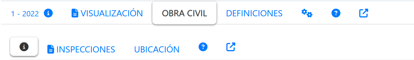 Al seleccionar la pestaña OBRA CIVIL, se mostrará una segundo nivel de PESTAÑAS que muestra la opciones que tiene esta categoría de inspecciones, tal como se muestra en la siguiente imagen