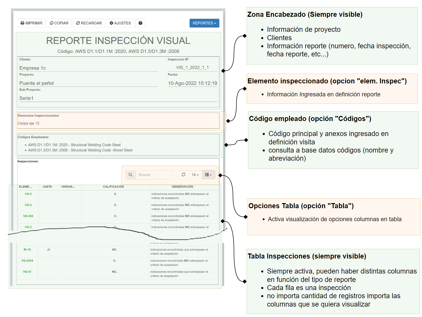 Reportes de Inspección/Definición reportes/Catálogo de Variables de Reportes/Inspecciones interactivas del tipo END