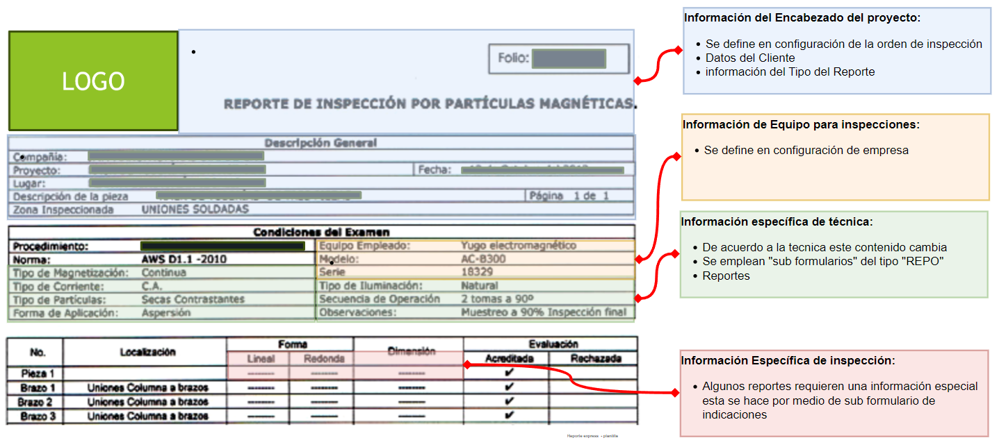Junto a las información que se se obtiene del reporte EXPRESS, se presenta un reporte modelo donde es posible extraer la información específica de cada técnica.
