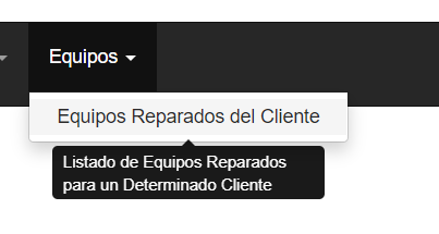 •Equipos Reparados del Cliente Muestra todos los equipos Reparados que pertenezcan al cliente. Ver más detalles en Equipos Reparados para cliente