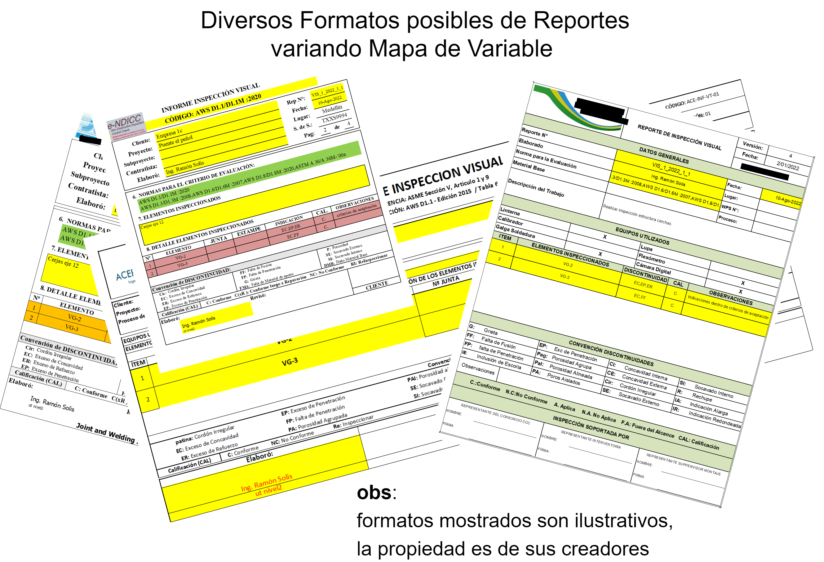 Este mapa de Variables permite poder generar varios reportes al modificar su mapa de variable, tal como se muestra en la siguiente imagen.