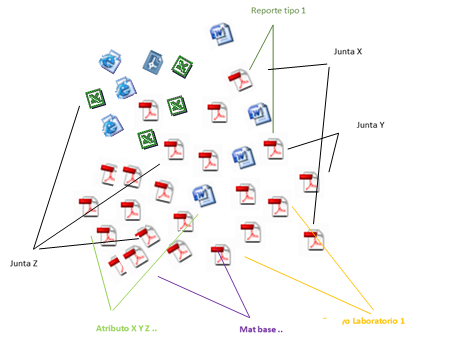 A simple vista, pareciera que la información contenida en formato papel o digital fuese más fácil manejarla como archivo digital se tiene que de los cientos o miles de reportes es difícil extraer información de ellos. es como considerar que la información de todos los reportes de todas las carpetas esta distribuida de la siguiente manera.