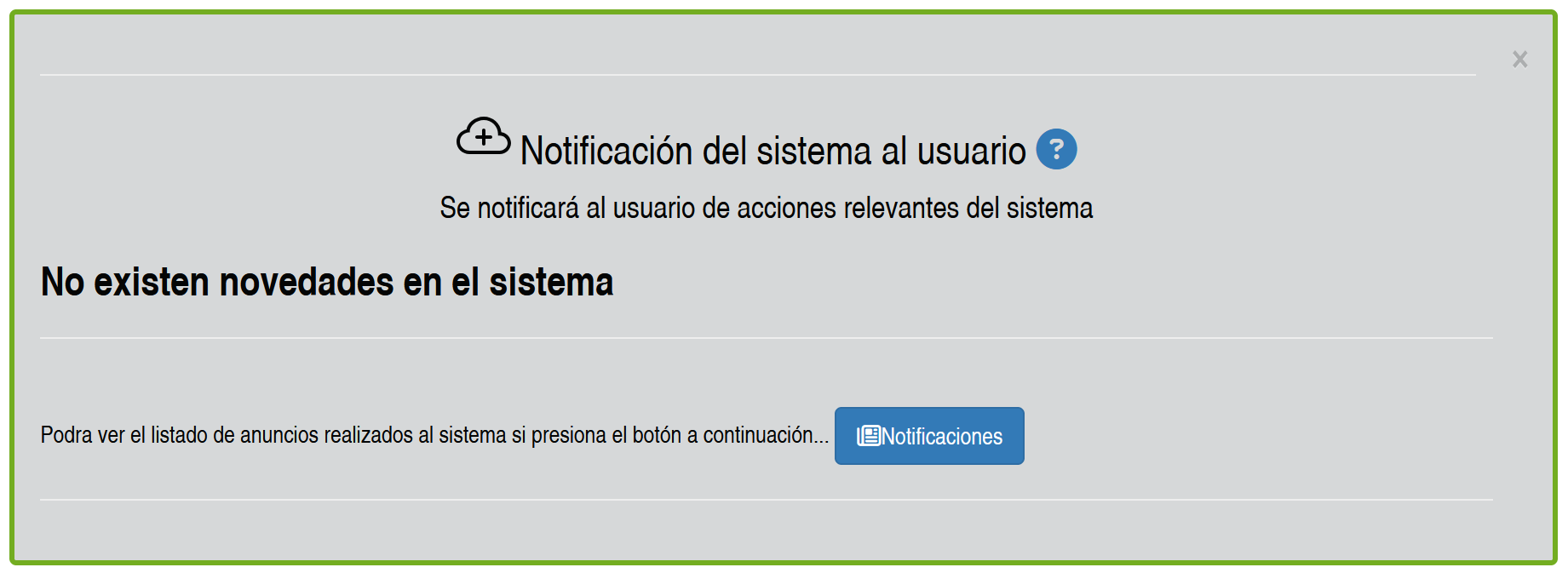 En cualquier momento se puede presionar el botón y en caso de que no haya notificaciones se activará una ventana con el siguiente contenido