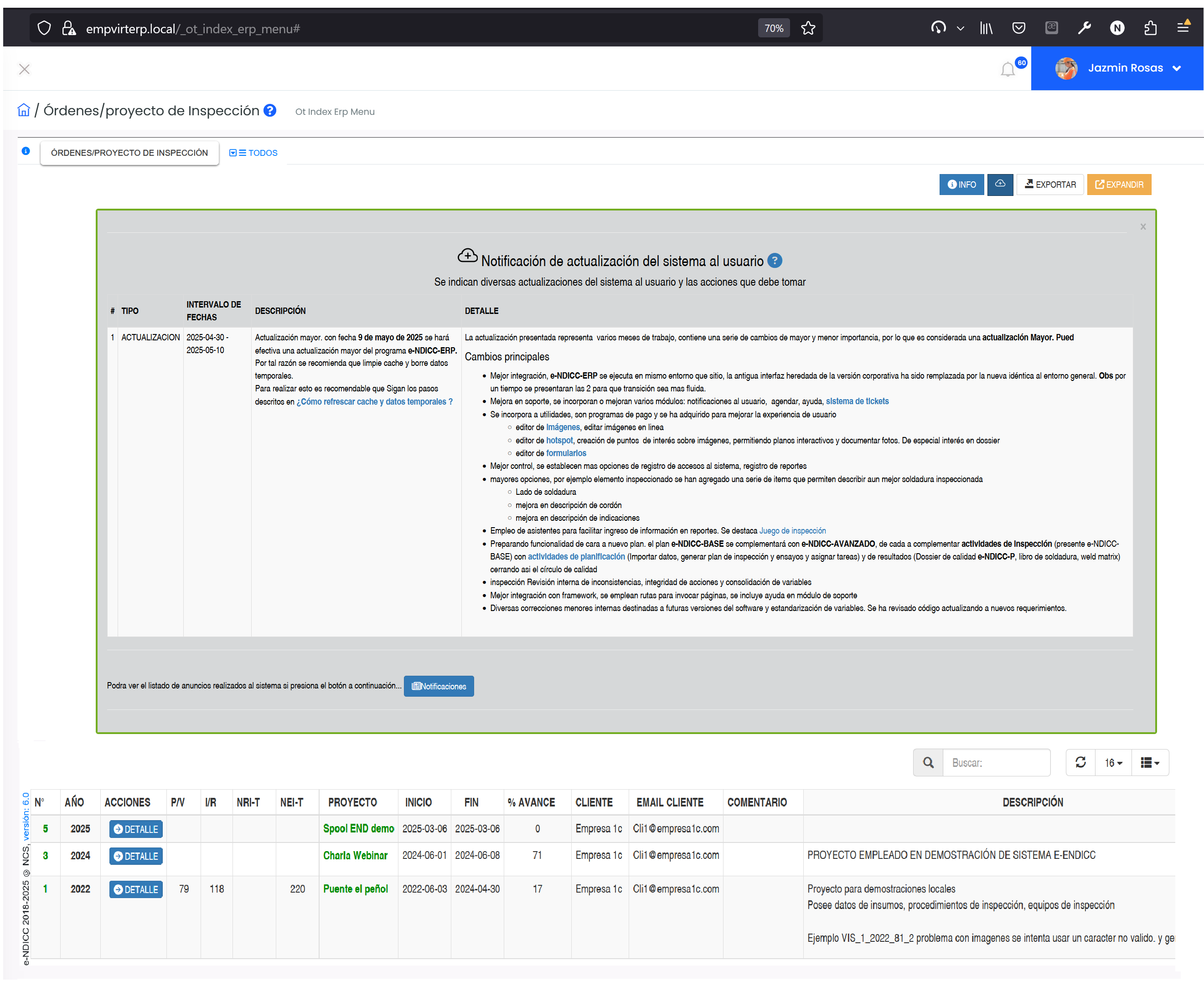 Si se presiona el botón Notificaciones se activará una ventana emergente con el histórico de notificaciones.