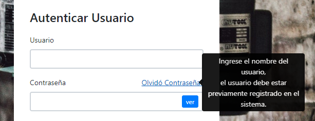 Tanto para usuarios, como también para clientes, junto al panel de ingreso existe una opción "olvido contraseña", tal como se muestra a continuación