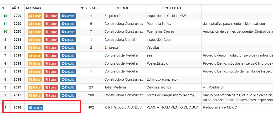 Se aprecia que la orden 1 tiene deshabilitados los botones de editar y borrar.