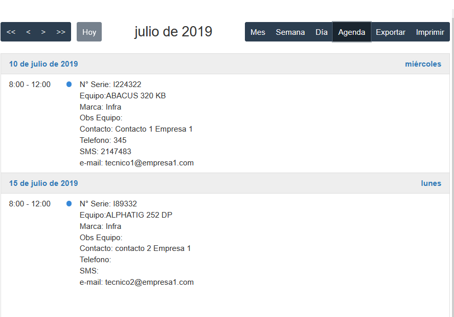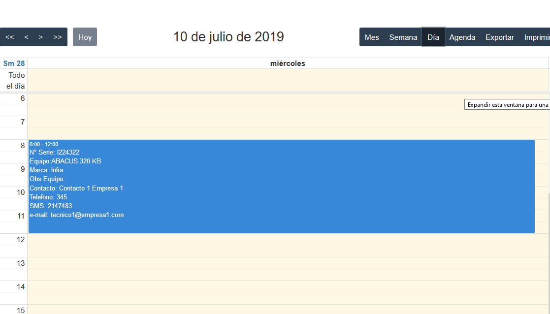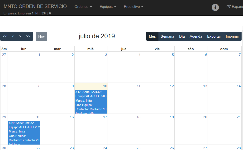 En el caso de que un mantenimiento preventivo ocurra en un día determinado, se agregará un evento representado por un recuadro de color azul.