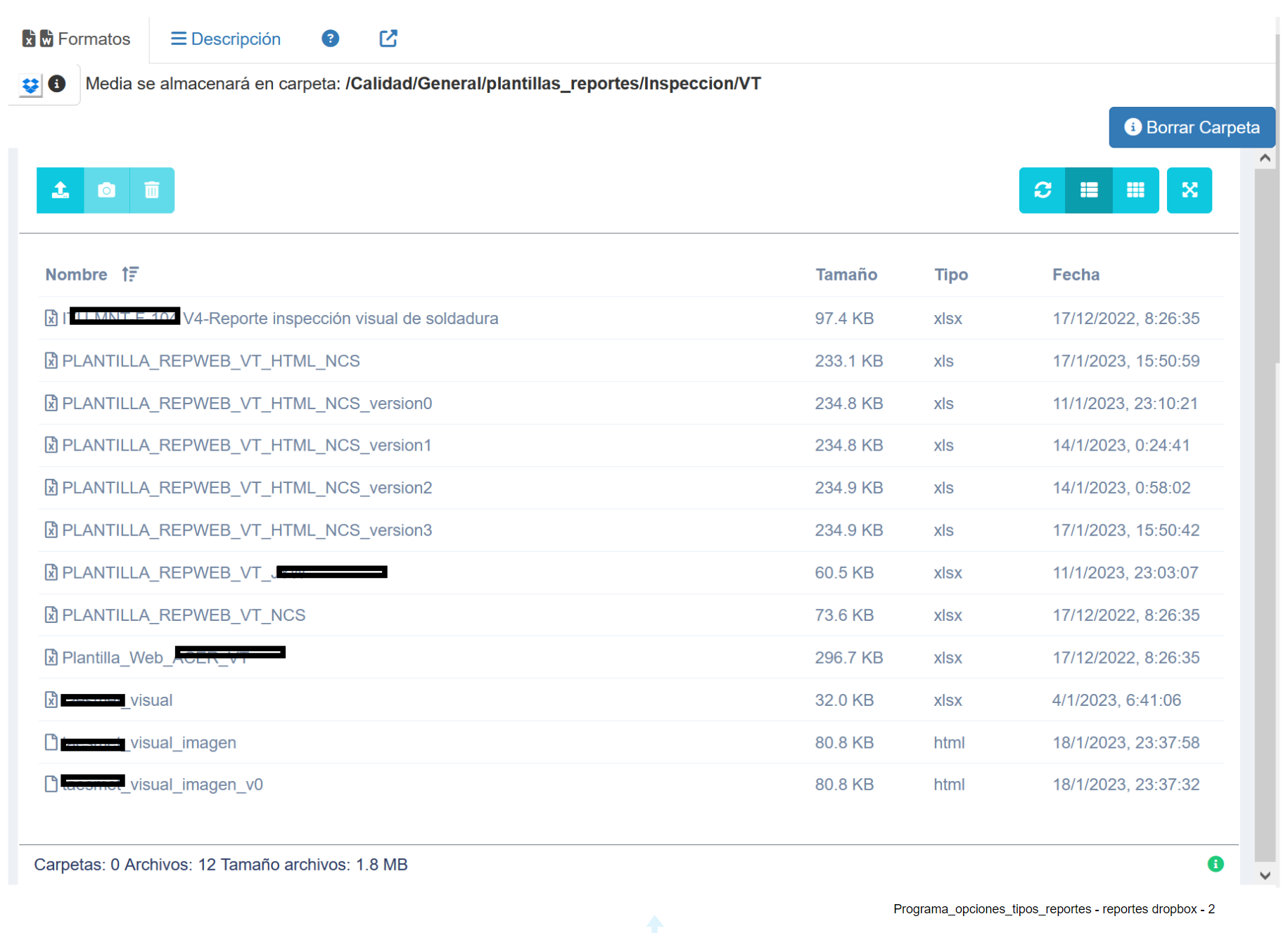 Fig 566 Extracto de pantalla, gestor de archivos empleado en sistema e-NDICC-ERP.