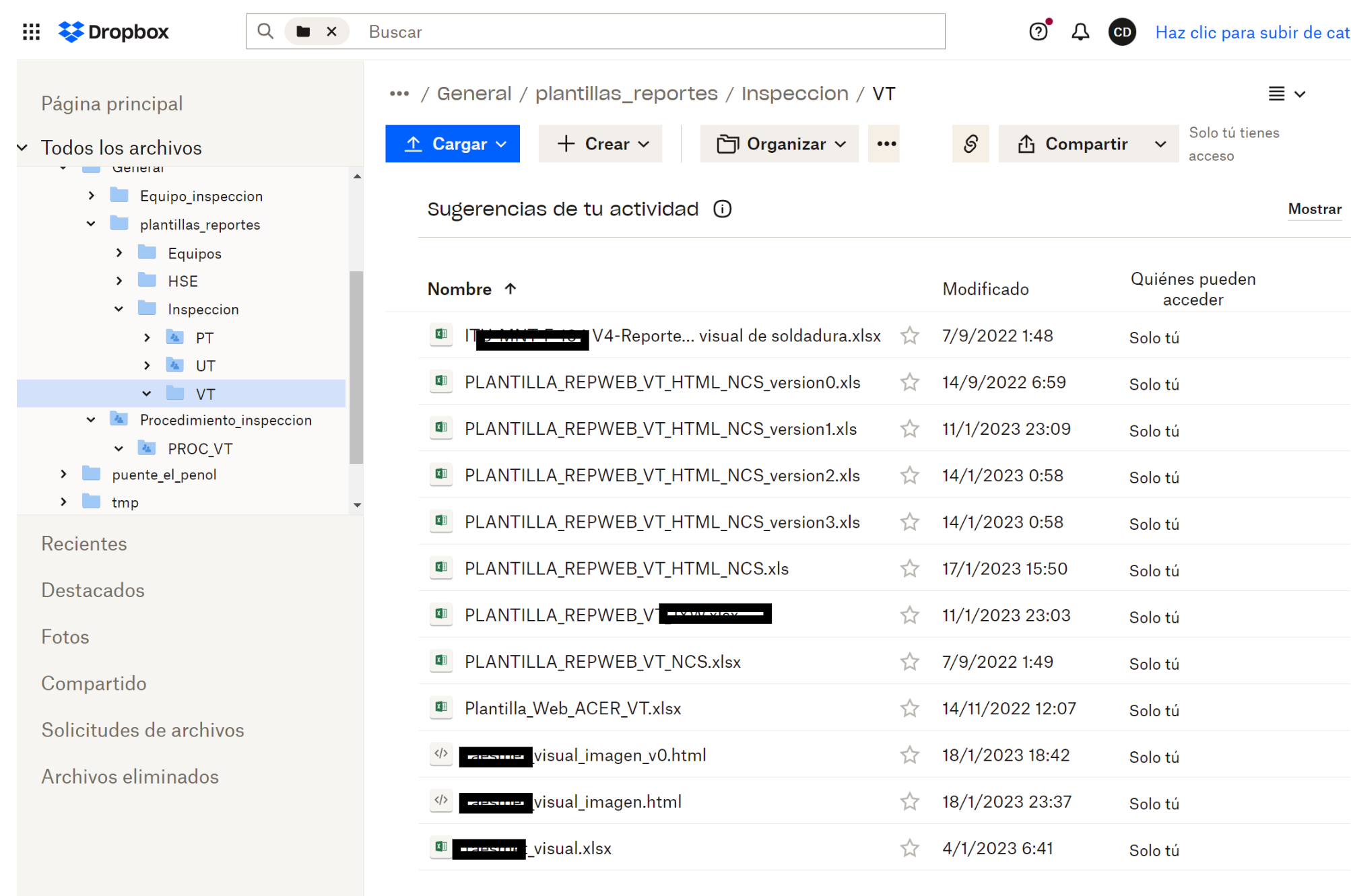 Fig 567 Extracto de pantalla, los mismos archivos anteriormente cargados vistos desde medio de almacenamiento Dropbox.