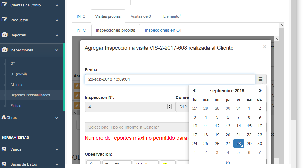 Ilustración 13 Ventana emergente para editar/crear nueva visita