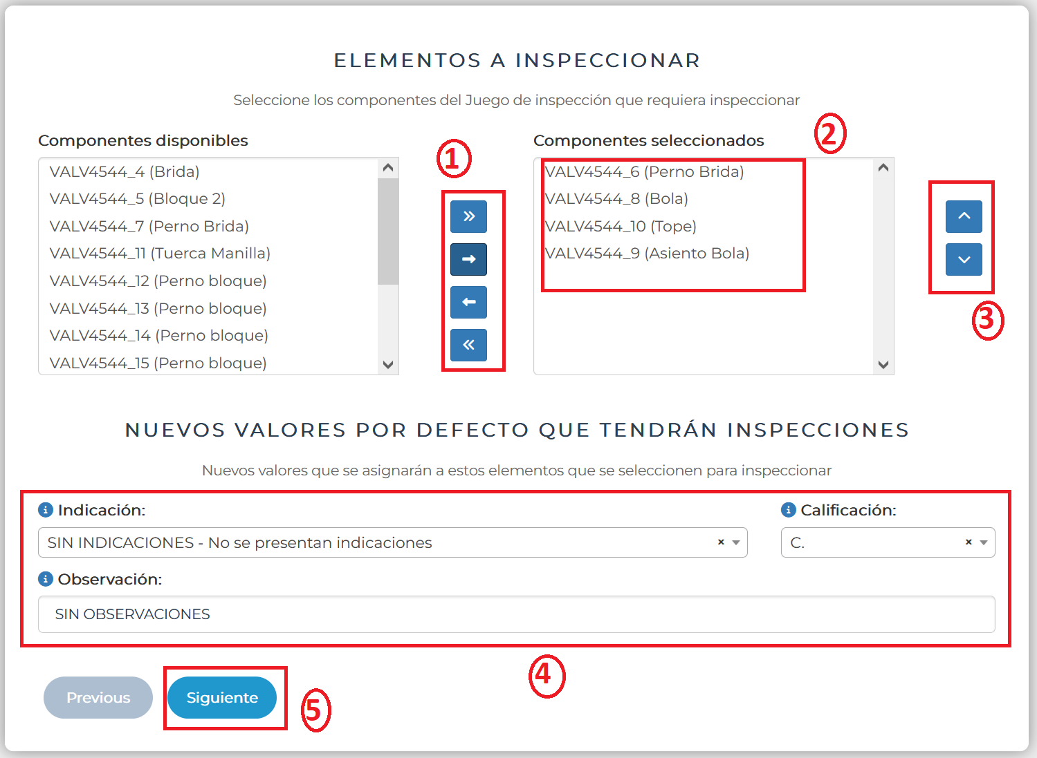 Ilustración 23 Extracto de pantalla asistente juego inspección etapa 2 con elementos seleccionados