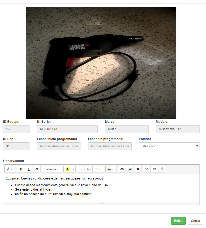 •Cada imagen/documento estará relacionado con el código de equipo, Orden de Servicio y Número de reparación.