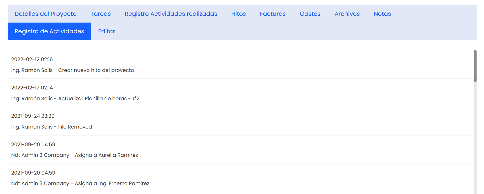 Sistema e-NDICC-ERP/Proyecto - Orden de Inspección/Proyecto/Detalle de un Proyecto de Inspección/Registro de Actividades del sistema