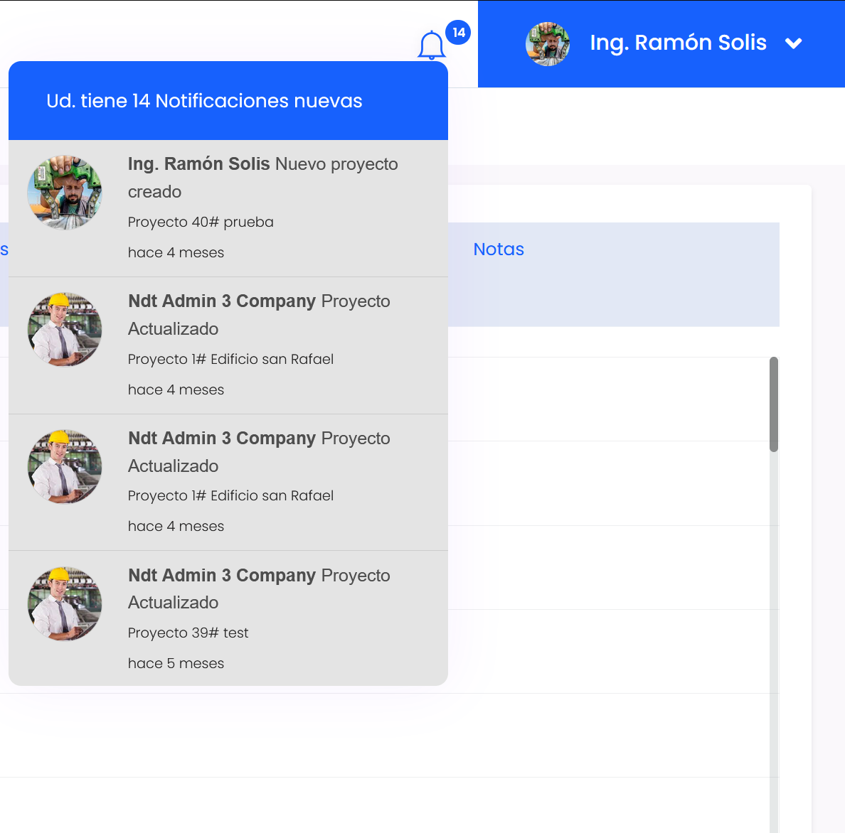 Fig 1479 Extracto de pantalla indicando notificaciones que se le presentan al usuario por cambio de actividades relacionadas con el proyecto.