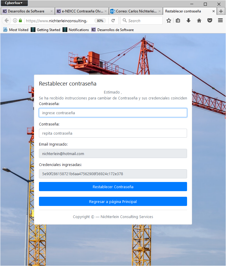 Si se accede al correo electrónico y se se selecciona el link con el Token adecuado y dentro del tiempo de espera aparecerá una pantalla en donde se puede restablecer la contraseña, tal como se muestra en la siguiente imagen.