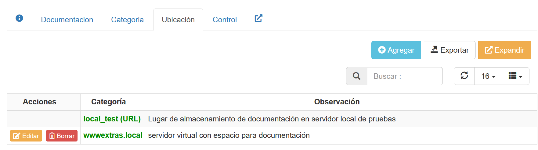 Fig 1362 Extracto de pantalla, indicando listado de Medios de almacenamiento definidos para documentación.